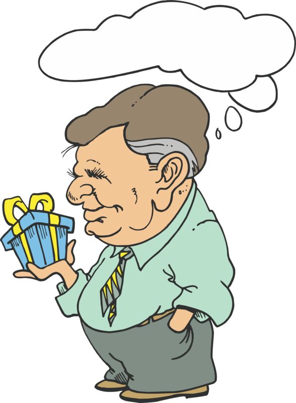 Older gent with present and thought bubble