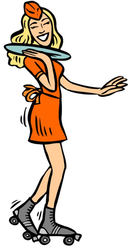 Woman waitress rollerskates